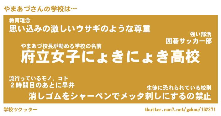 | 2回繰り返すあだ名 | 『やまやま』『ややまま』『ぬめぬめ』 |