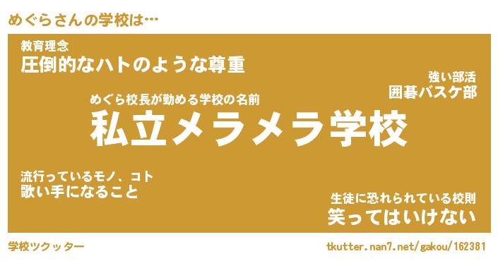 | 意味不明あだ名 | 『ペロリンめぐら』『めぐらフォーエバー』 |