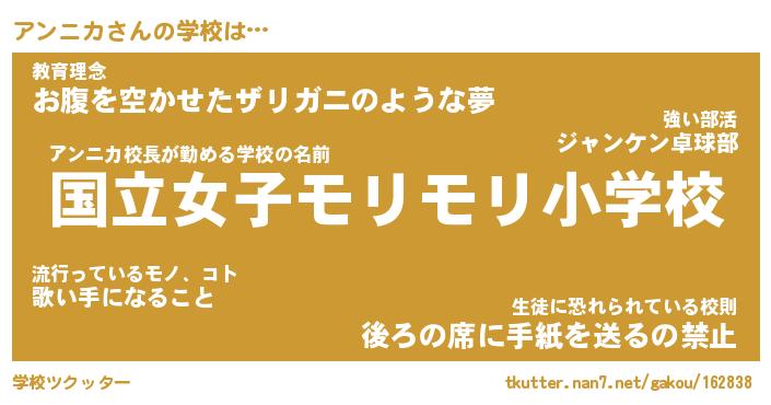 | 意味不明あだ名 | 『ペロリンアンニカ』『永久保存アンニカ』 |