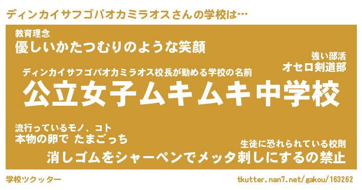 | ヒーロー風カッコイイあだ名 | 『スーパーディンカイサフゴパオカミラオス』 |