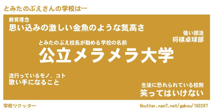| 肩書あだ名 | 『とみたのぶえ社長』『とみたのぶえ教頭』 |