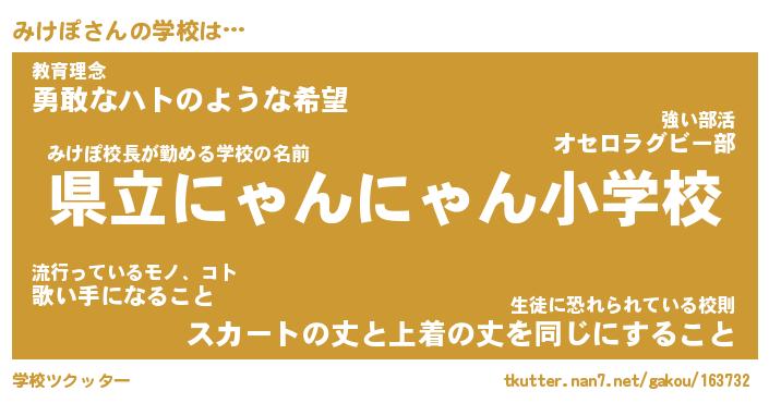| ヒーロー風カッコイイあだ名 | 『スーパーミケポ』『ウルトラみけぽマン』 |