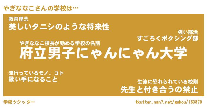 | 伝説のあだ名 | 『不死鳥のスナイパーやぎななこ』 |
