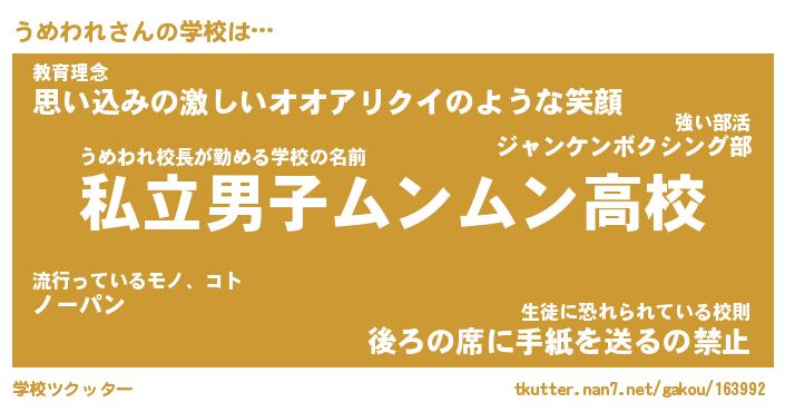 | ヒーロー風カッコイイあだ名 | 『スーパーウメワレ』『天弓騎士ウメ』 |