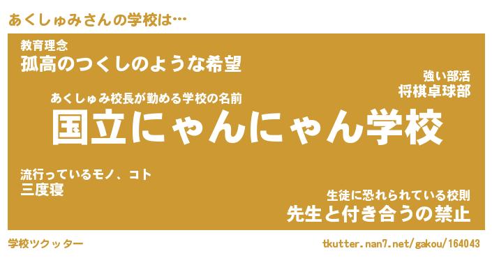 | 肩書あだ名 | 『あくしゅみ社長令嬢』『あくしゅみ教頭』 |