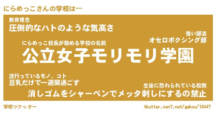 | ヘコむあだ名 | 『にらふぇ~』『牛乳』『にらぷりん』 |
