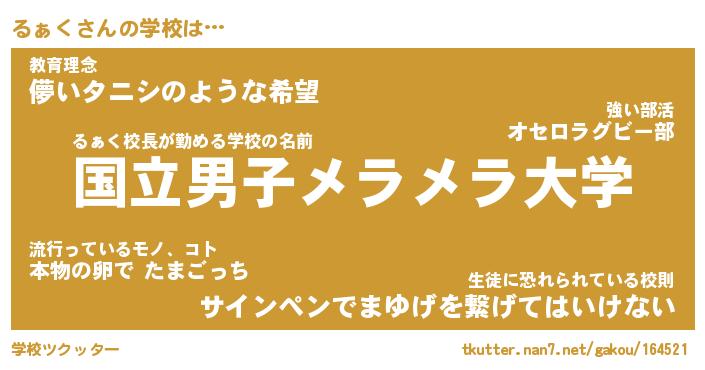 | ヘコむあだ名 | 『るぁにー』『なまこ酢』『るぁ太郎』 |