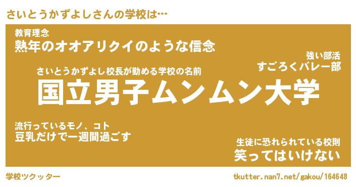 | 肩書あだ名 | 『さいとうかずよし店長』 |