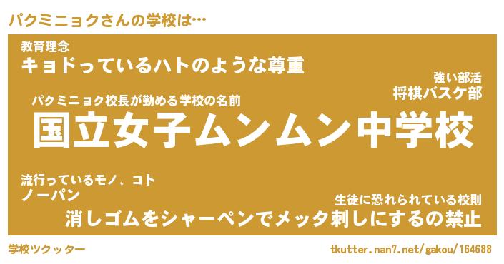 | 意味不明あだ名 | 『ペロリンパクミニョク』 |