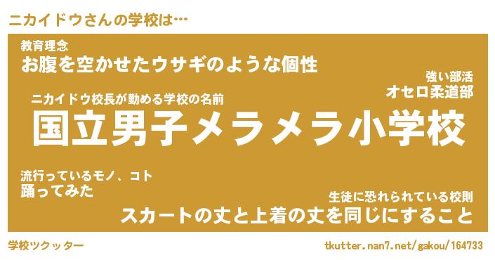 | ヒーロー風カッコイイあだ名 | 『スーパーニカイドウ』『魔戒騎士ニカ』 |