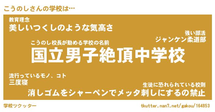 | こうのし先生が勤める学校名『都立肉球中学校』 |