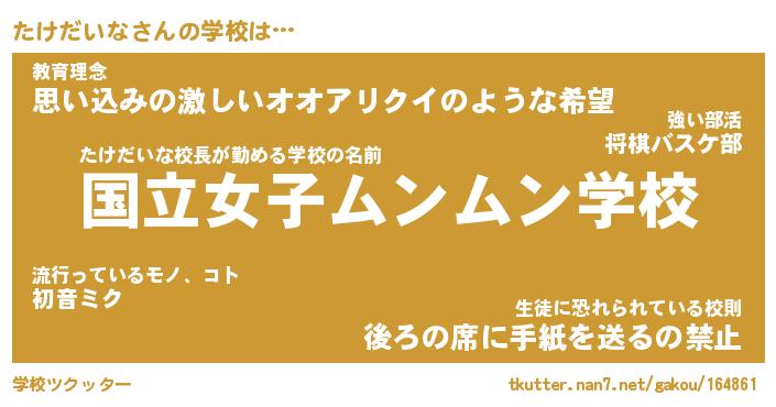 | ファンタジー風あだ名 | 『タケフェル』『エターナルタケダイナー』 |