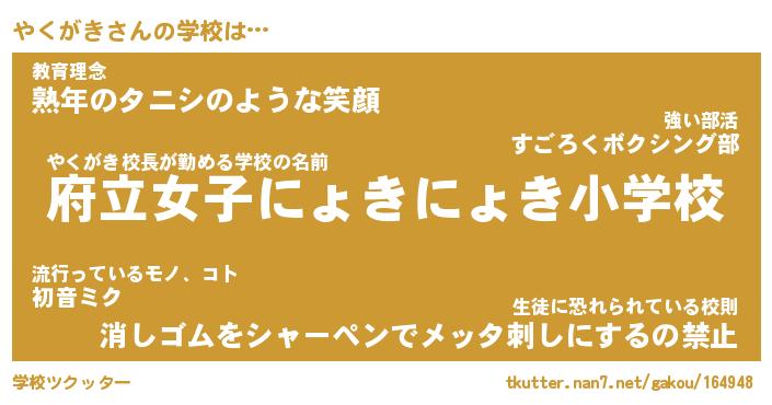 | ヘコむあだ名 | 『やくにゅー』『つくし』『やくっぺ』 |