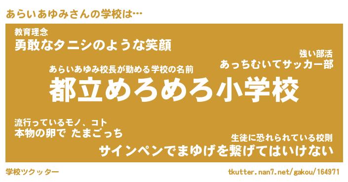 | 伝説のあだ名 | 『伝説のスナイパーあらいあゆみ』 |