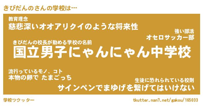 | 男性向けラノベタイトル風あだ名 | 『きびだんのの憂鬱』 |