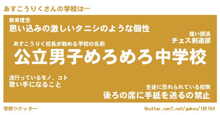 | 男性向けラノベタイトル風あだ名 | 『あすこうりくの憂鬱』 |
