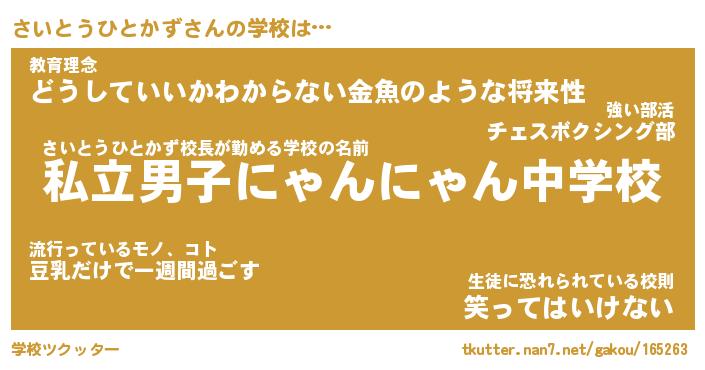 | 男性向けラノベタイトル風あだ名 | 『さいとうひとかずの憂鬱』 |