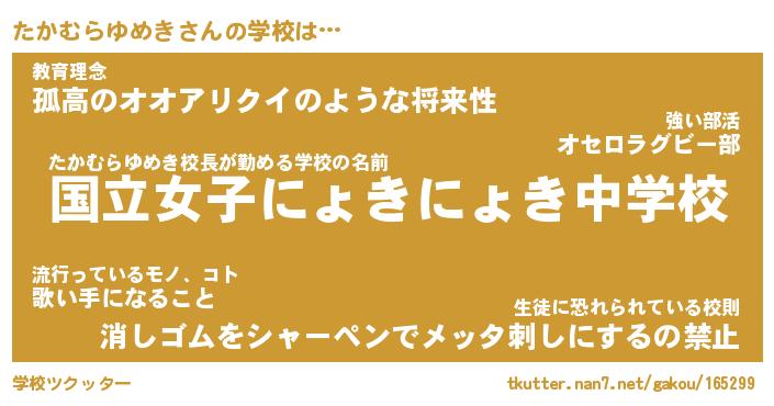 | 恥ずかしいあだ名 | 『プリティーたかむらゆめき』『たかちん』 |
