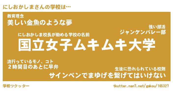 | 肩書あだ名 | 『にしおかしま社長』『にしおかしま担任』 |