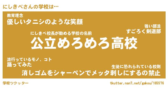 | 男性向けラノベタイトル風あだ名 | 『にしきべの憂鬱』 |