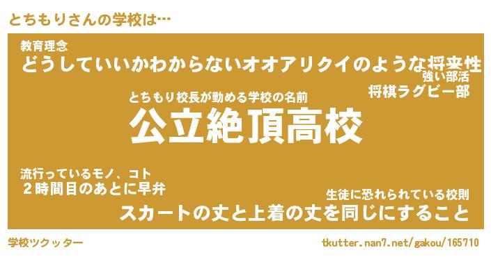 | 男性向けラノベタイトル風あだ名 | 『とちもりの憂鬱』 |