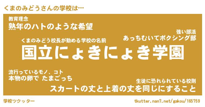 | 男性向けラノベタイトル風あだ名 | 『くまのみどうの憂鬱』 |