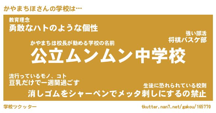 | ヘコむあだ名 | 『かやにゅー』『なまこ酢』 |
