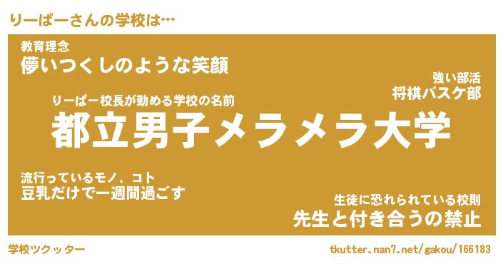 | 意味不明あだ名 | 『ペロリンりーぱー』『永久保存りーぱー』 |