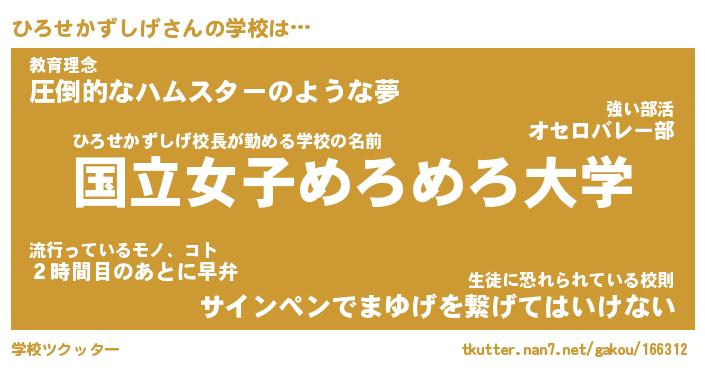 | 伝説のあだ名 | 『封印されしスナイパーひろせかずしげ』 |
