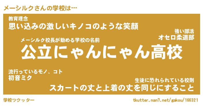 | 男性向けラノベタイトル風あだ名 | 『メーシルクの憂鬱』 |