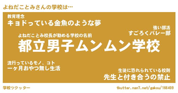 | 女子向けラノベタイトル風あだ名 | 『よねだことみ姫と円卓の騎士』 |