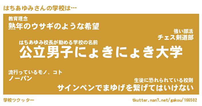 | 男性向けラノベタイトル風あだ名 | 『はちあゆみの憂鬱』 |