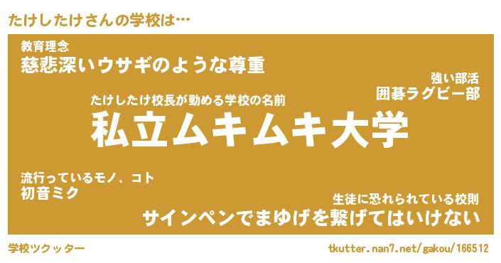 | ファンタジー風あだ名 | 『タケフェル』『エターナルタケシタケー』 |