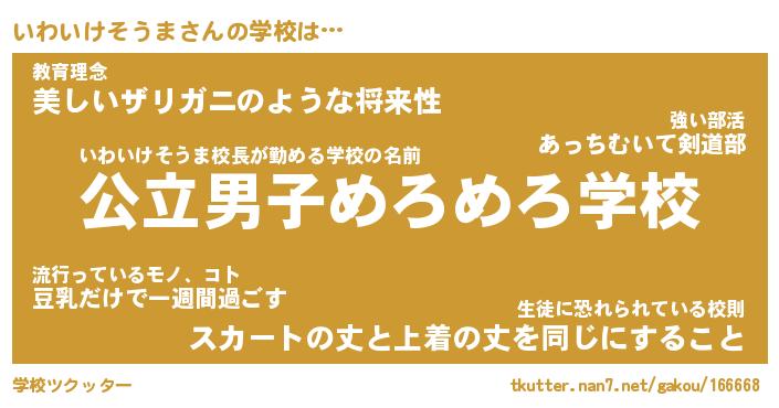 | 伝説のあだ名 | 『不死鳥のスナイパーいわいけそうま』 |