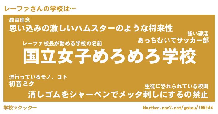 | 意味不明あだ名 | 『ペロリンレーファ』『永久保存レーファ』 |