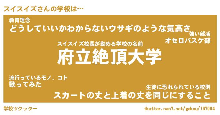 | 男性向けラノベタイトル風あだ名 | 『スイスイズの憂鬱』 |