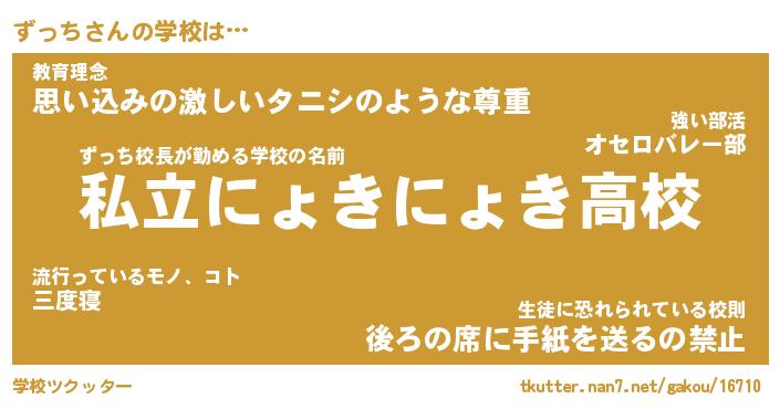 | 男性向けラノベタイトル風あだ名 | 『ずっちの憂鬱』 |