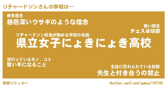 | 女子向けラノベタイトル風あだ名 | 『誰かこのリチャードソンを説明してください! ~契約から始まるウェディング~』 |