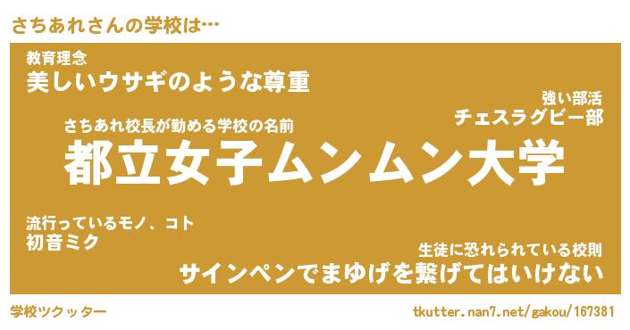 | ファンタジー風あだ名 | 『サチフェル』『エターナルサチアレー』 |