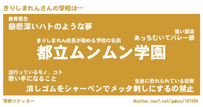 | ヘコむあだ名 | 『きりにゅー』『つくし』 |