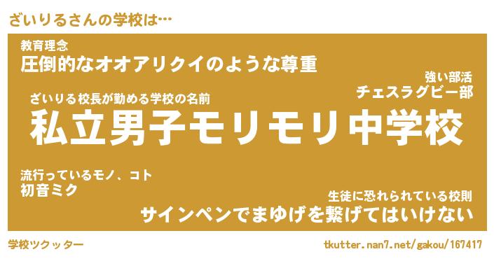 | 男性向けラノベタイトル風あだ名 | 『ざいりるの憂鬱』 |