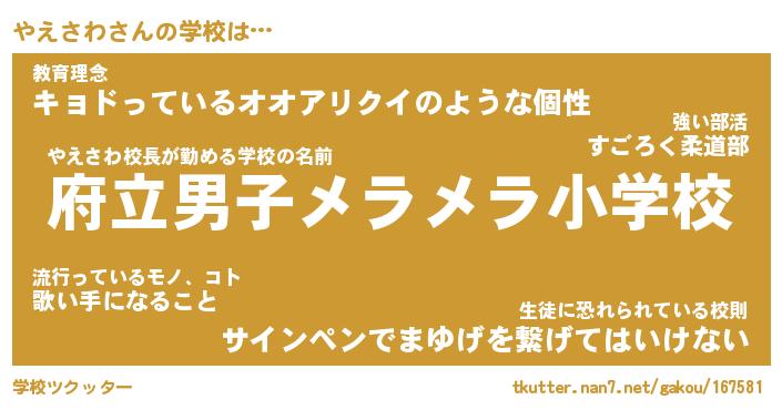 | ピコ太郎風あだ名 | 『ヤコ次郎』『ピヤ六郎』『ヤエ五郎』 |