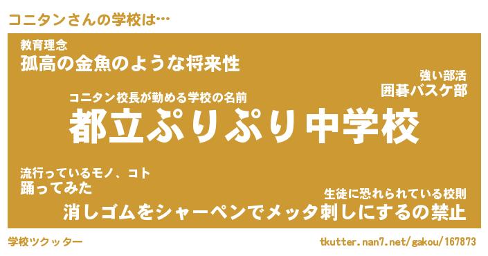 | 男性向けラノベタイトル風あだ名 | 『コニタンの憂鬱』 |