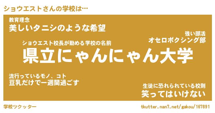 | 男性向けラノベタイトル風あだ名 | 『ショウエストの憂鬱』 |