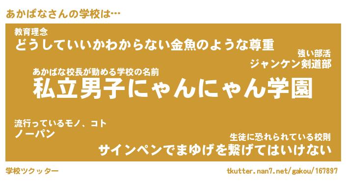 | ヒーロー風カッコイイあだ名 | 『スーパーアカバナ』『天弓騎士アカ』 |
