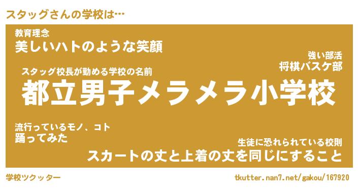 | 病院 | スタッグ院長の病院名『都立黒光り診療所』 |