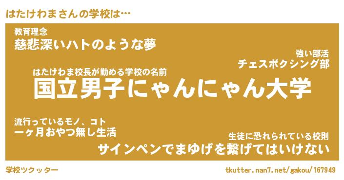 | 男性向けラノベタイトル風あだ名 | 『はたけわまの憂鬱』 |