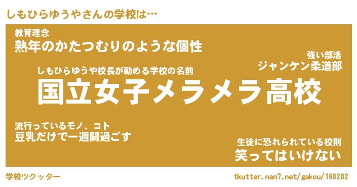 | ヘコむあだ名 | 『しもにー』『つくし』『しもぷりん』 |