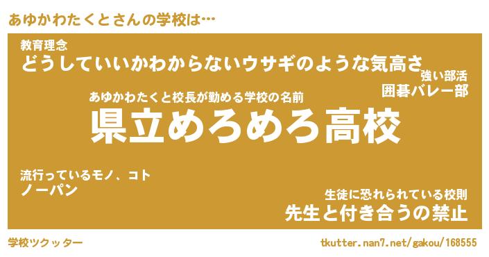 | 伝説のあだ名 | 『伝説のスナイパーあゆかわたくと』 |