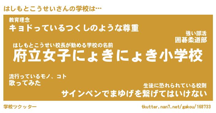 | 女子向けラノベタイトル風あだ名 | 『誰かこのはしもとこうせいを説明してください! ~契約から始まるウェディング~』 |